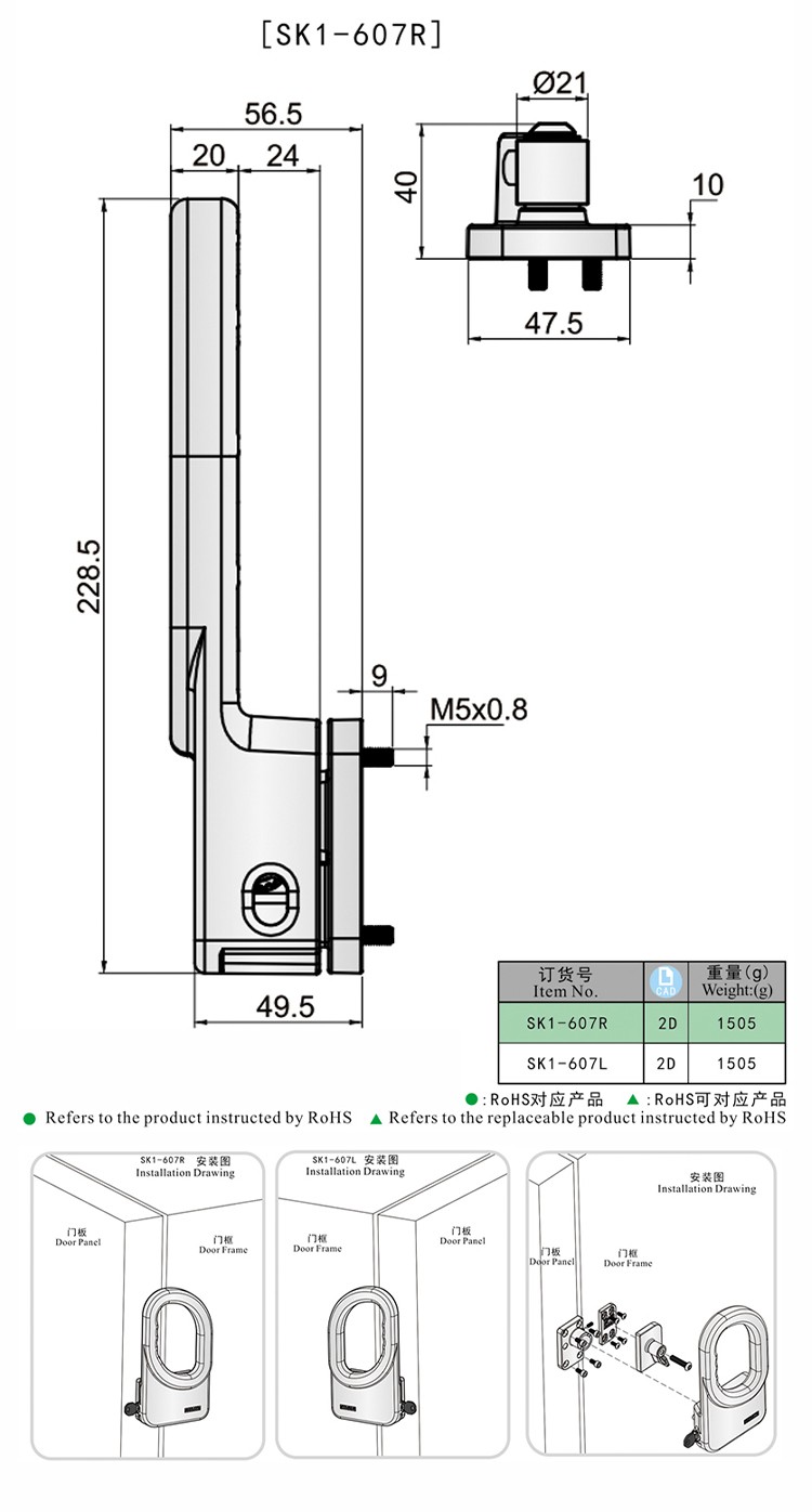 尚坤SK1-607R生物医疗箱侧门装拉紧门把手 环境试验箱大型侧门迫紧门把手