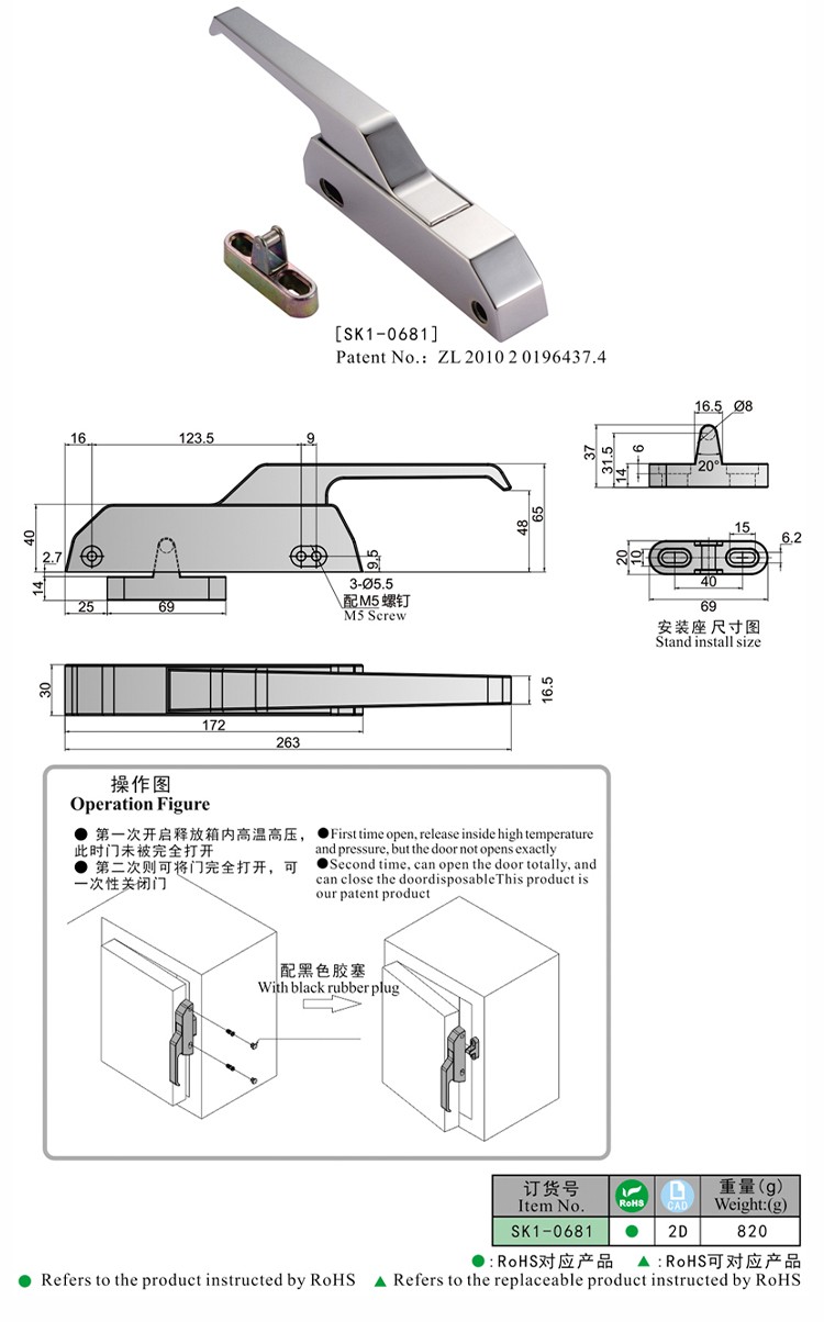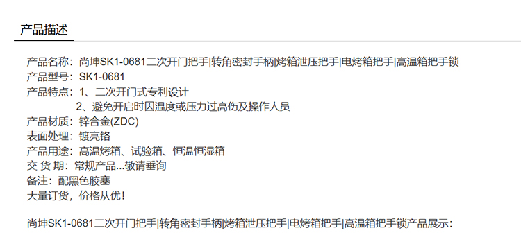 尚坤SK1-0681二次开门把手转角密封手柄烤箱泄压把手电烤箱把手高温箱把手锁