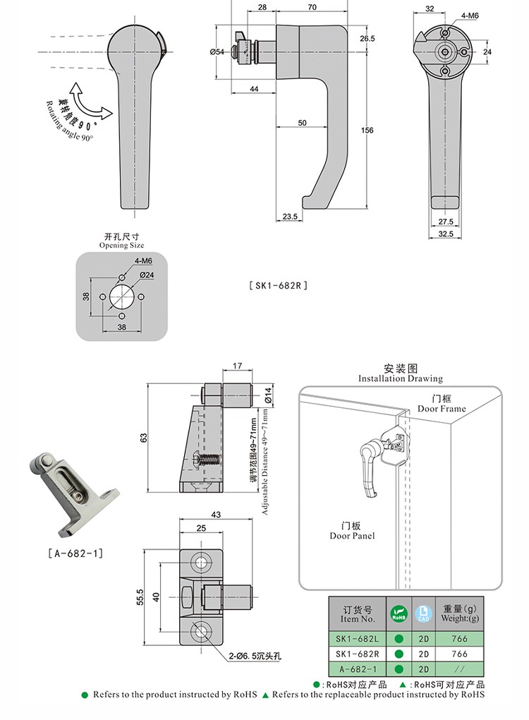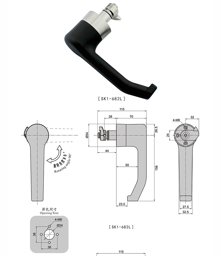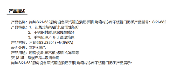 尚坤SK1-682厨房设备蒸汽箱迫紧把手锁 烤箱冷冻库不锈钢门把手