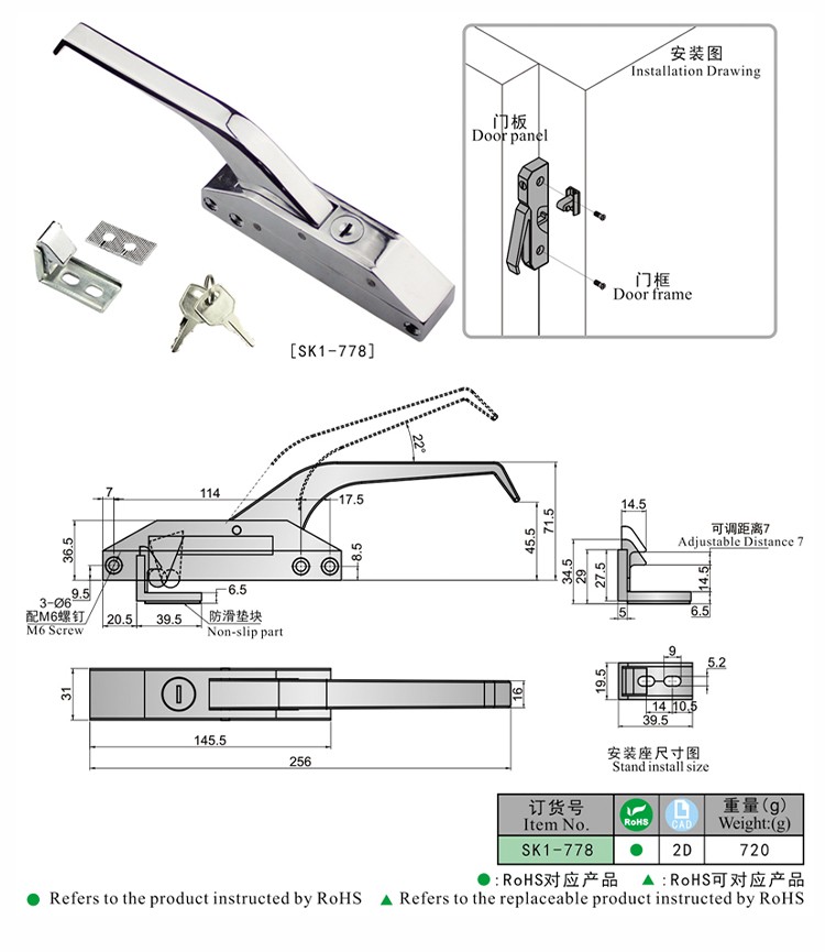 尚坤SK1-778库门把手锁烤箱把手低温箱把手低温箱门锁密封箱转角把手