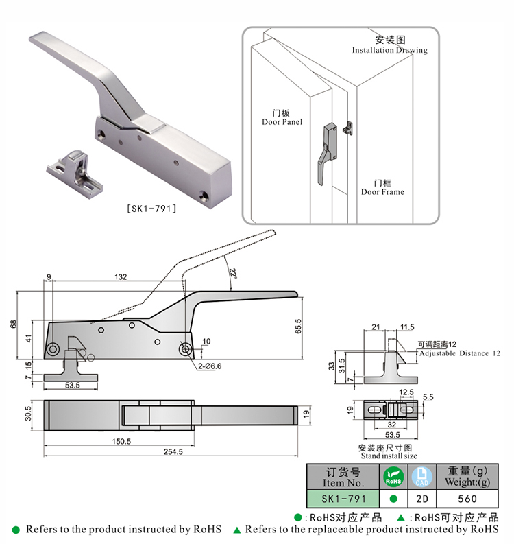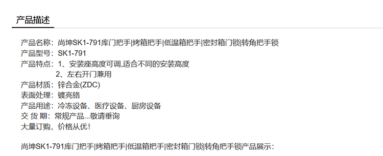 尚坤SK1-791库门把手烤箱把手低温箱把手密封箱门锁转角把手锁