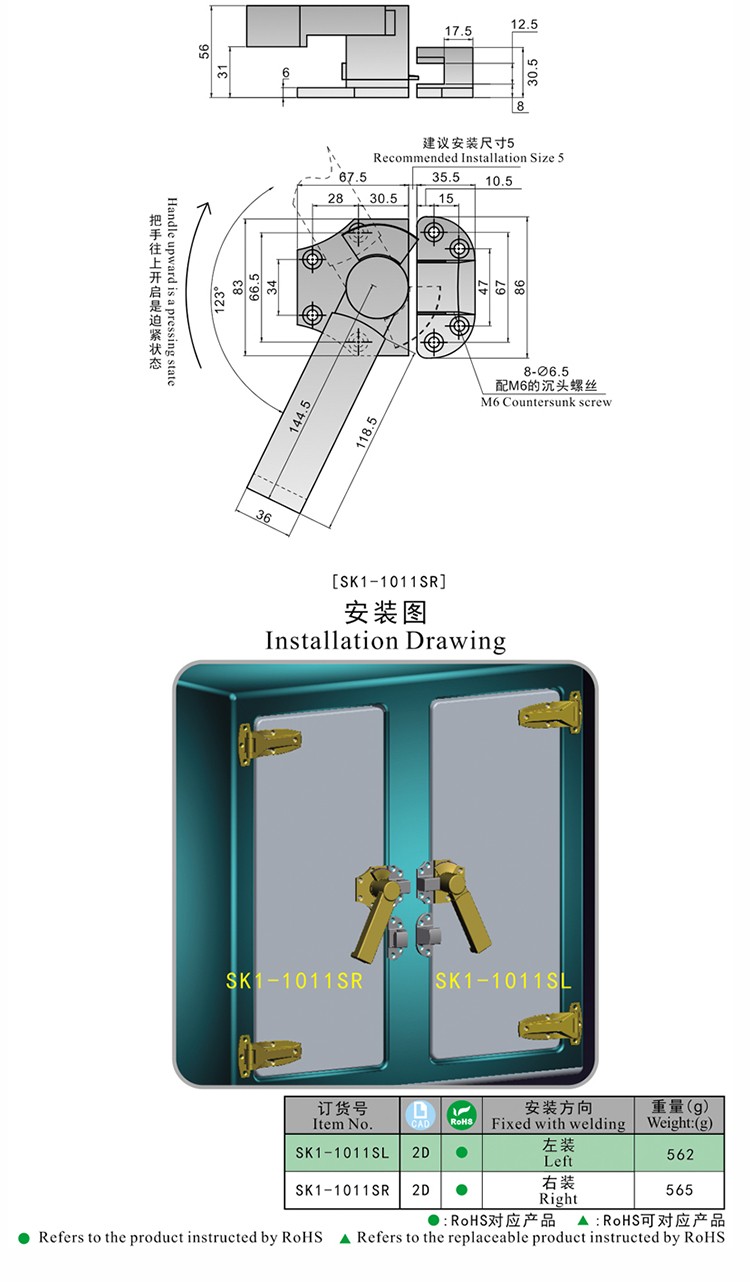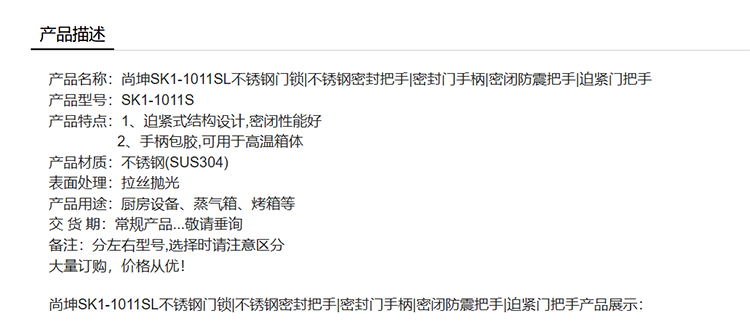 尚坤SK1-1011SL不锈钢门锁不锈钢密封把手密封门手柄迫紧门把手密闭防震把手