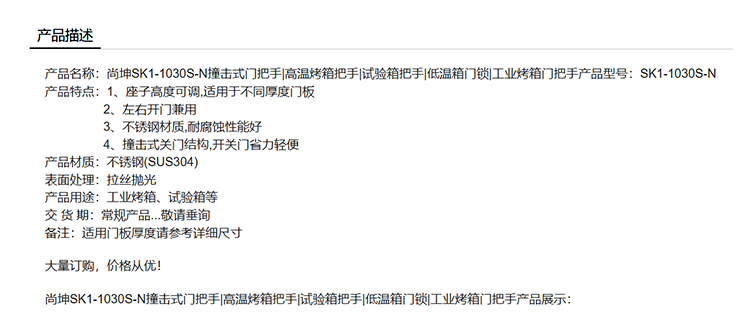 尚坤SK1-1030S-N撞击式门把手高温烤箱把手试验箱把手低温箱门锁工业烤箱门把手