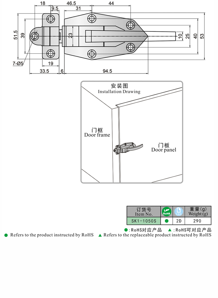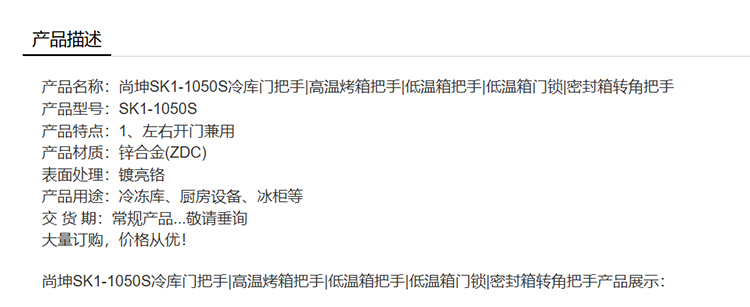 尚坤SK1-1050S冷库门把手高温烤箱把手低温箱把手低温箱门锁密封箱转角把手