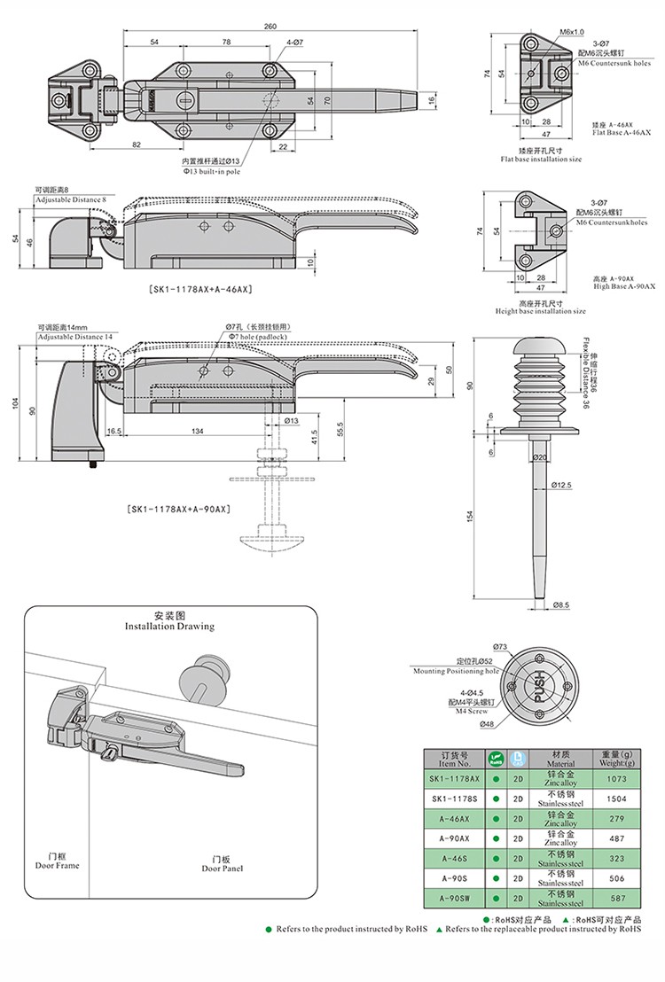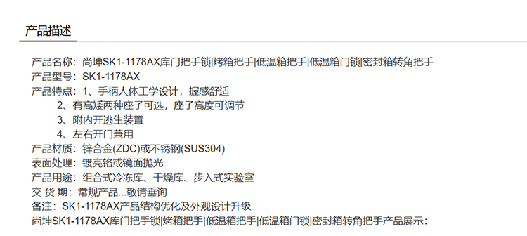尚坤SK1-1178AX库门把手锁烤箱把手低温箱把手低温箱门锁密封箱转角把手