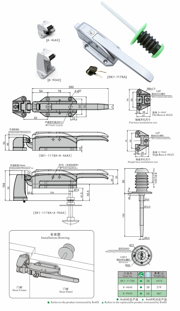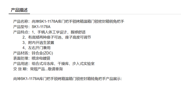 尚坤SK1-1178A库门把手锁烤箱温箱门锁密封箱转角把手