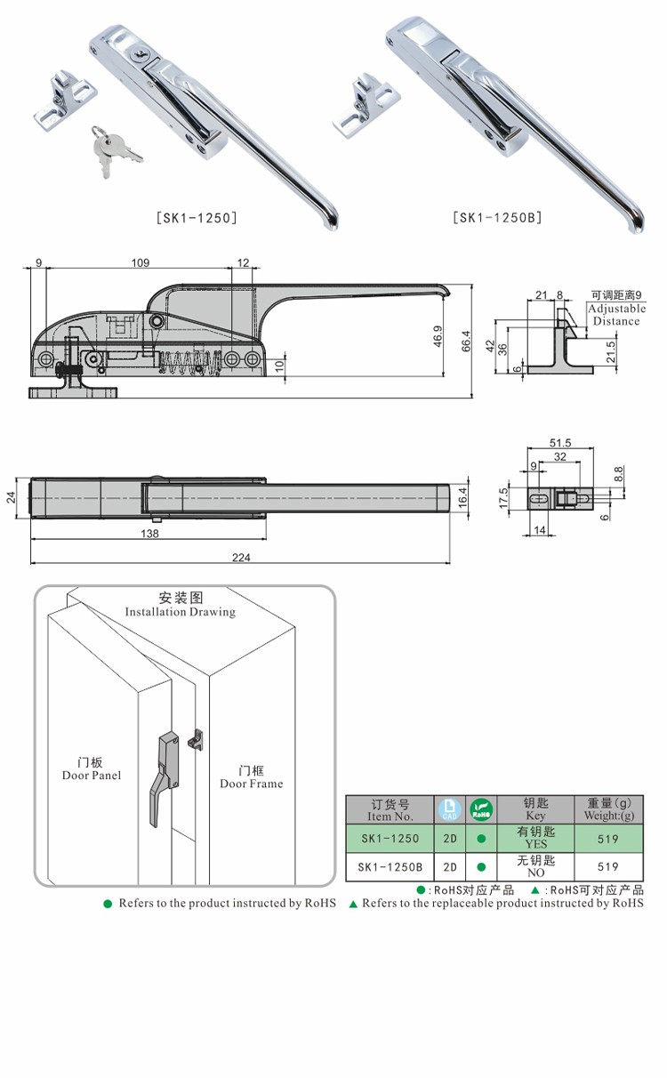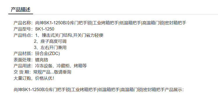 尚坤SK1-1250B冷库门把手锁工业烤箱把手低温箱把手高温箱门锁密封箱把手