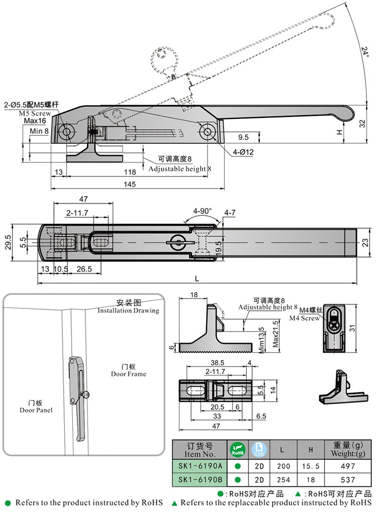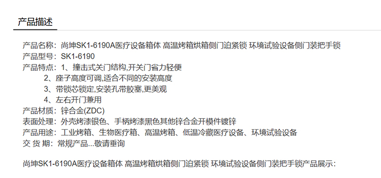 尚坤SK1-6190A医疗设备箱体 高温烤箱烘箱侧门迫紧锁 环境试验设备侧门装把手锁