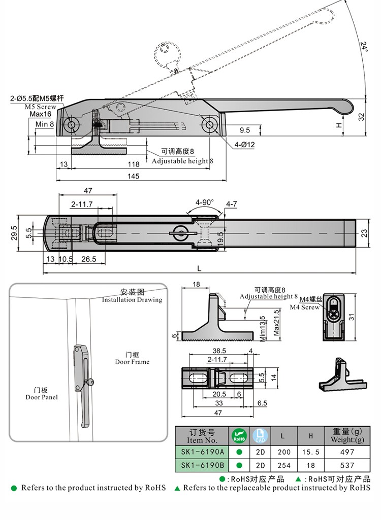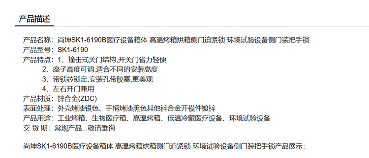 尚坤SK1-6190B医疗设备箱体 高温烤箱烘箱侧门迫紧锁 环境试验设备侧门装把手锁