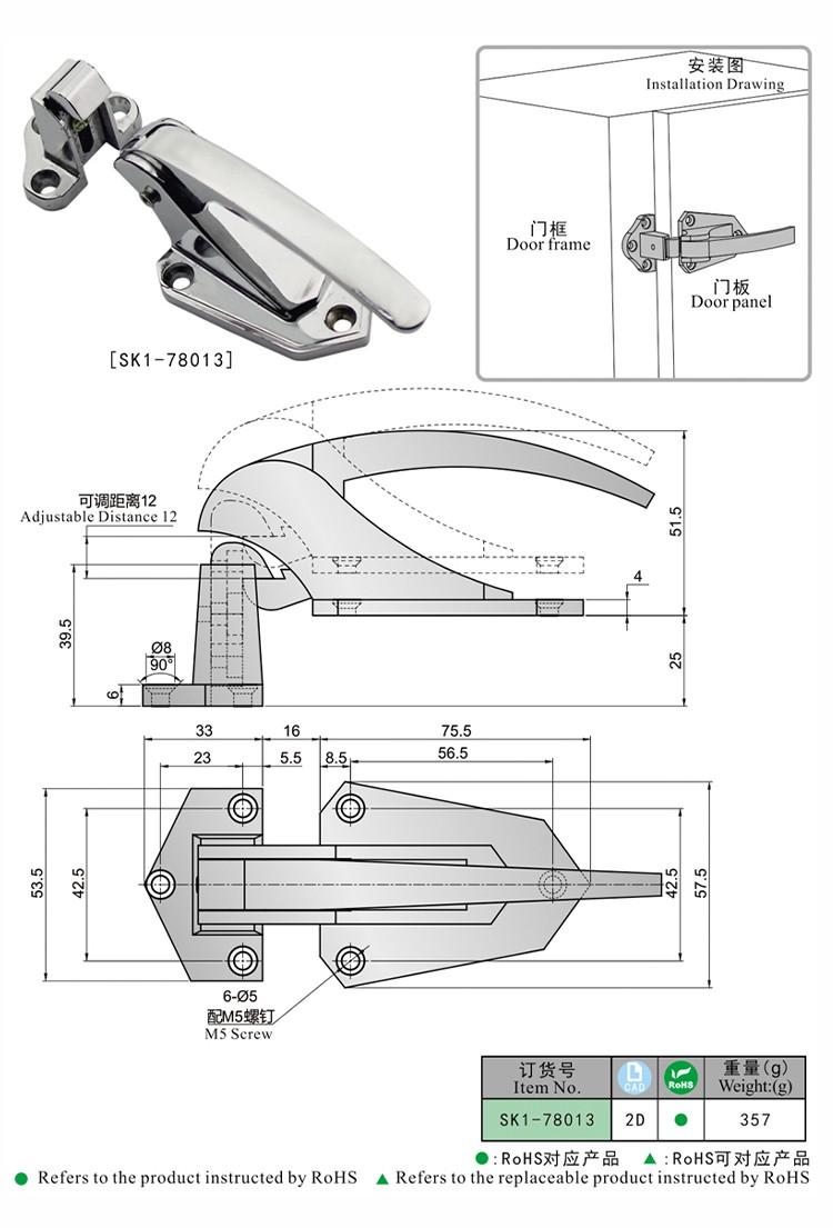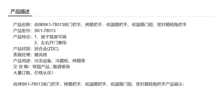 尚坤SK1-78013库门把手、烤箱把手、低温箱把手、低温箱门锁、密封箱转角把手