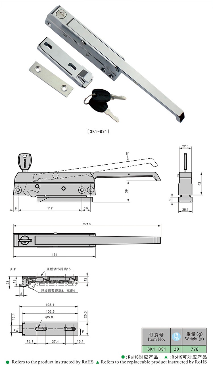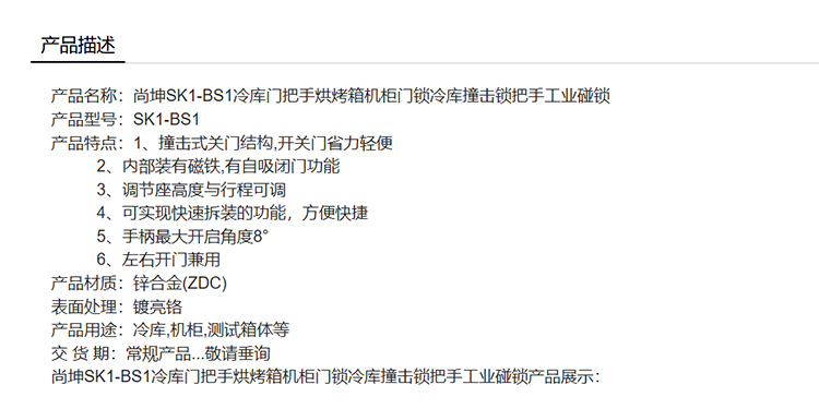 尚坤SK1-BS1冷库门把手烘烤箱机柜门锁冷库撞击锁把手工业碰锁