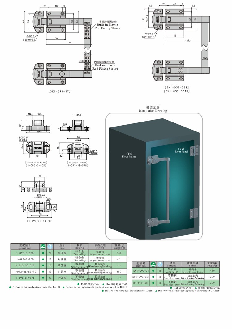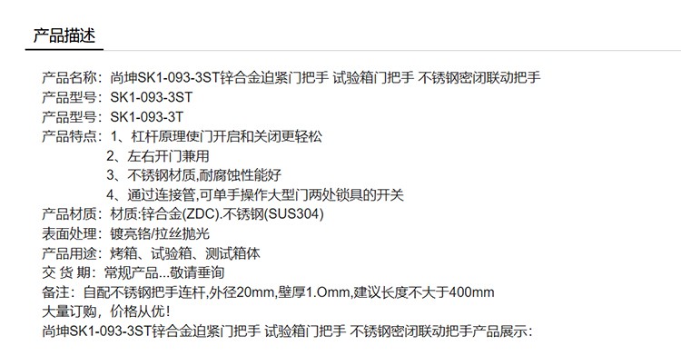 尚坤SK1-093-3ST锌合金迫紧门把手 试验箱门把手 密闭联动把手 密闭箱体专用锁