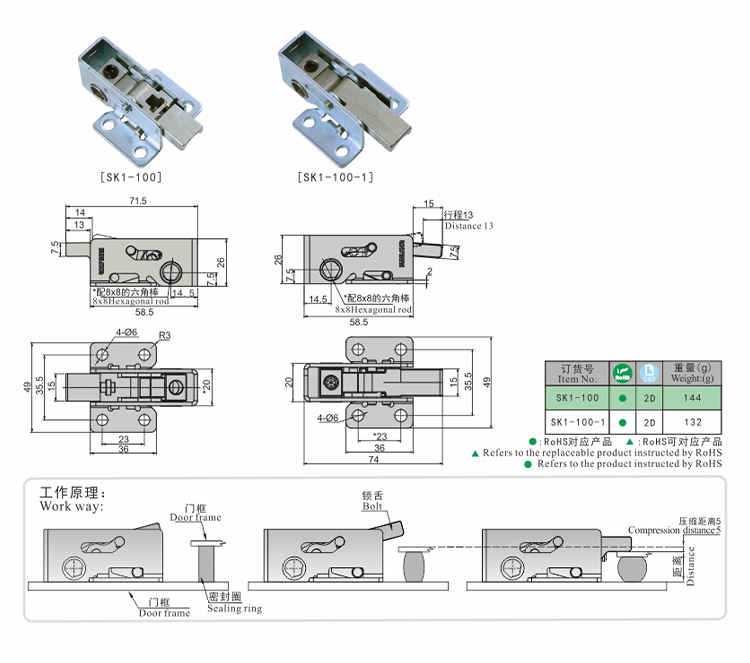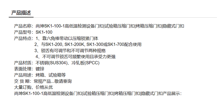 尚坤SK1-100-1高低温检测设备门扣试验箱压缩门扣烤箱压缩门扣隐藏式门扣