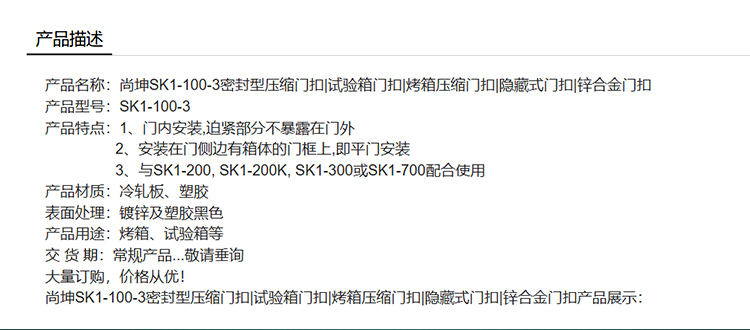 尚坤SK1-100-3密封型压缩门扣试验箱门扣烤箱压缩门扣隐藏式门扣锌合金门扣