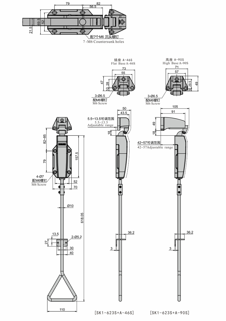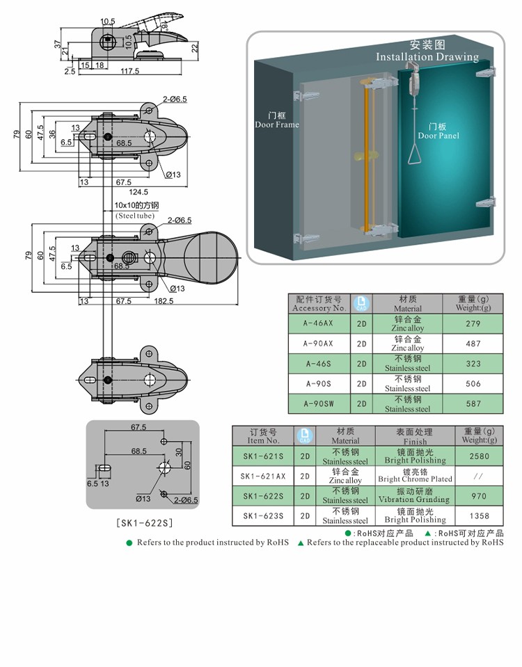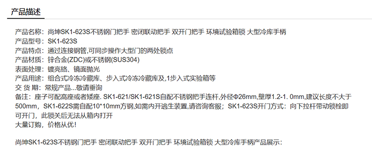 尚坤SK1-623S不锈钢门把手 密闭联动把手 双开门把手 环境试验箱锁 大型冷库手柄