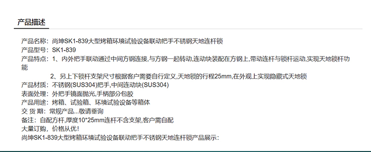 尚坤SK1-839大型烤箱环境试验设备联动把手不锈钢天地连杆锁