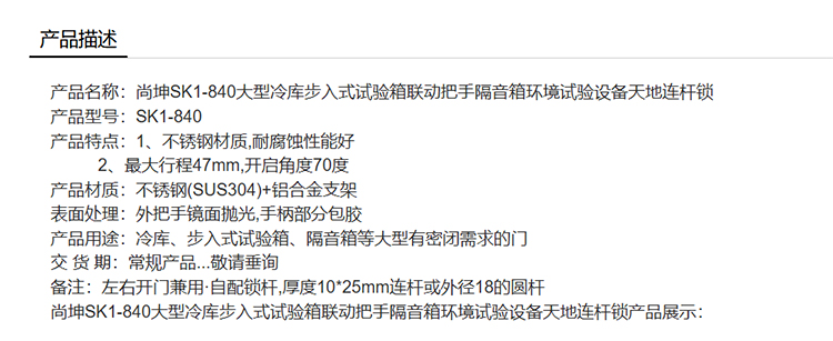 尚坤SK1-840大型冷库步入式试验箱联动把手隔音箱环境试验设备天地连杆锁