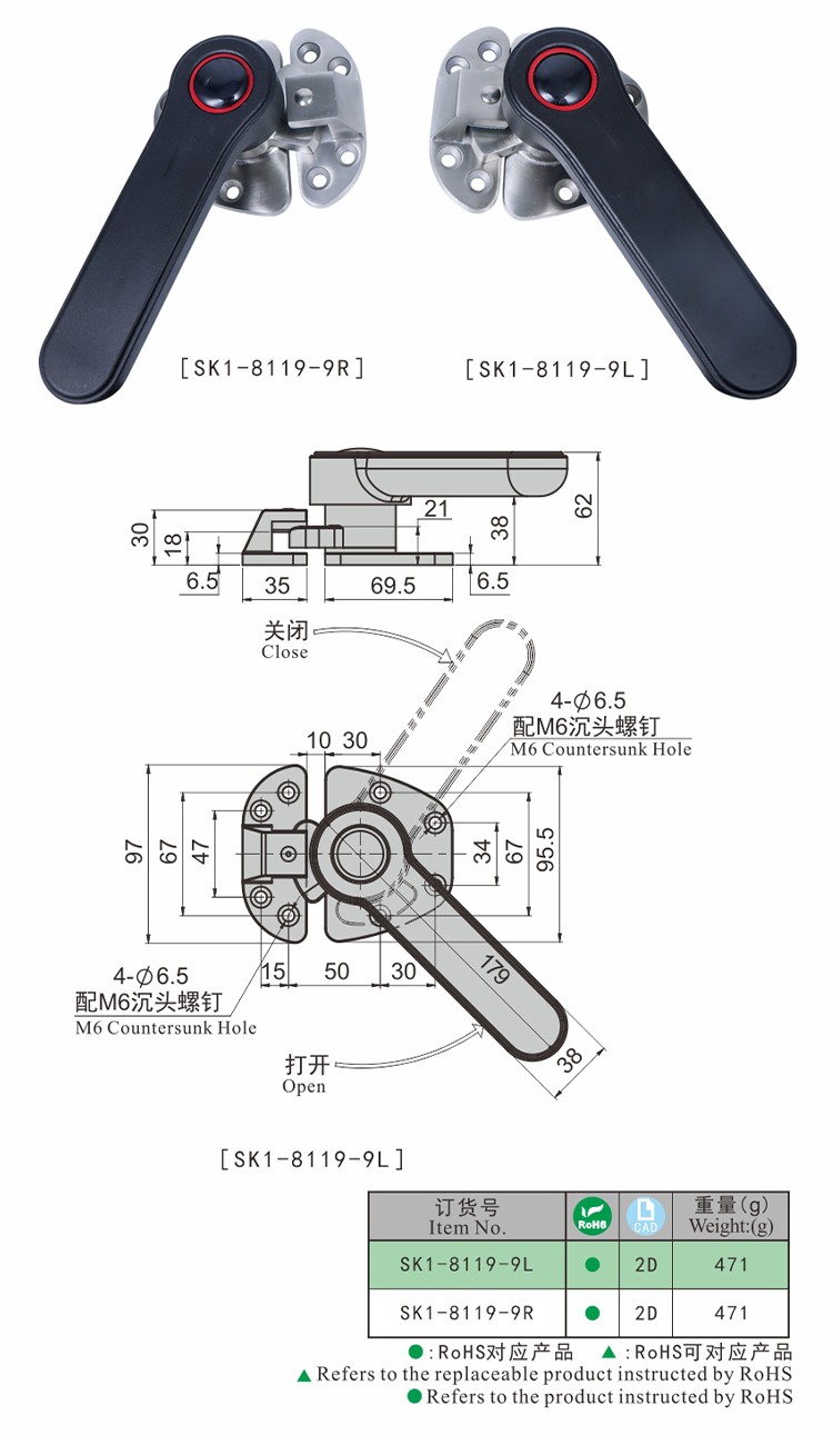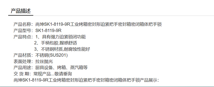 尚坤SK1-8119-9R工业烤箱密封形迫紧把手密封箱密闭箱体把手锁