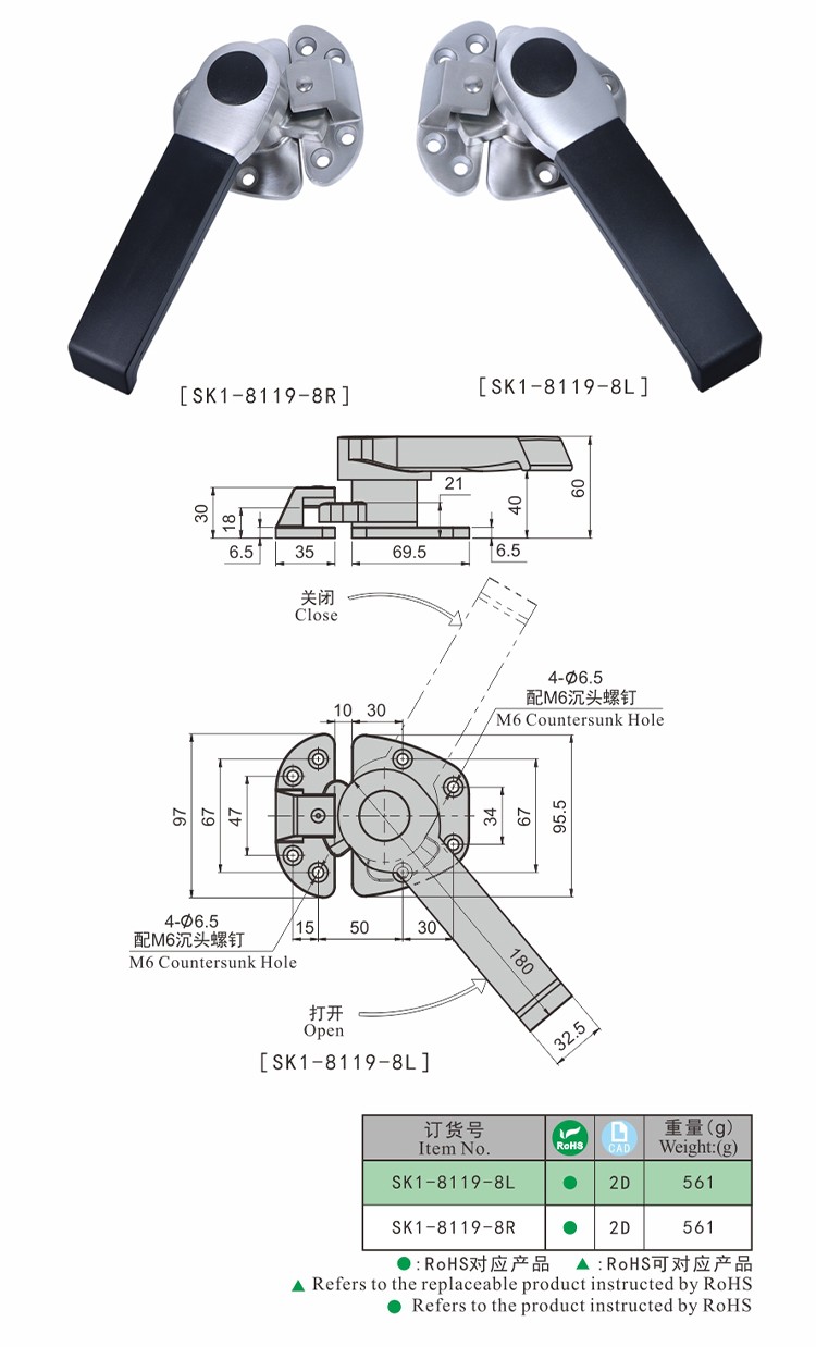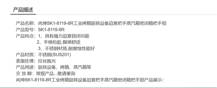 尚坤SK1-8119-8R工业烤箱厨具设备迫紧把手蒸汽箱密闭箱把手锁