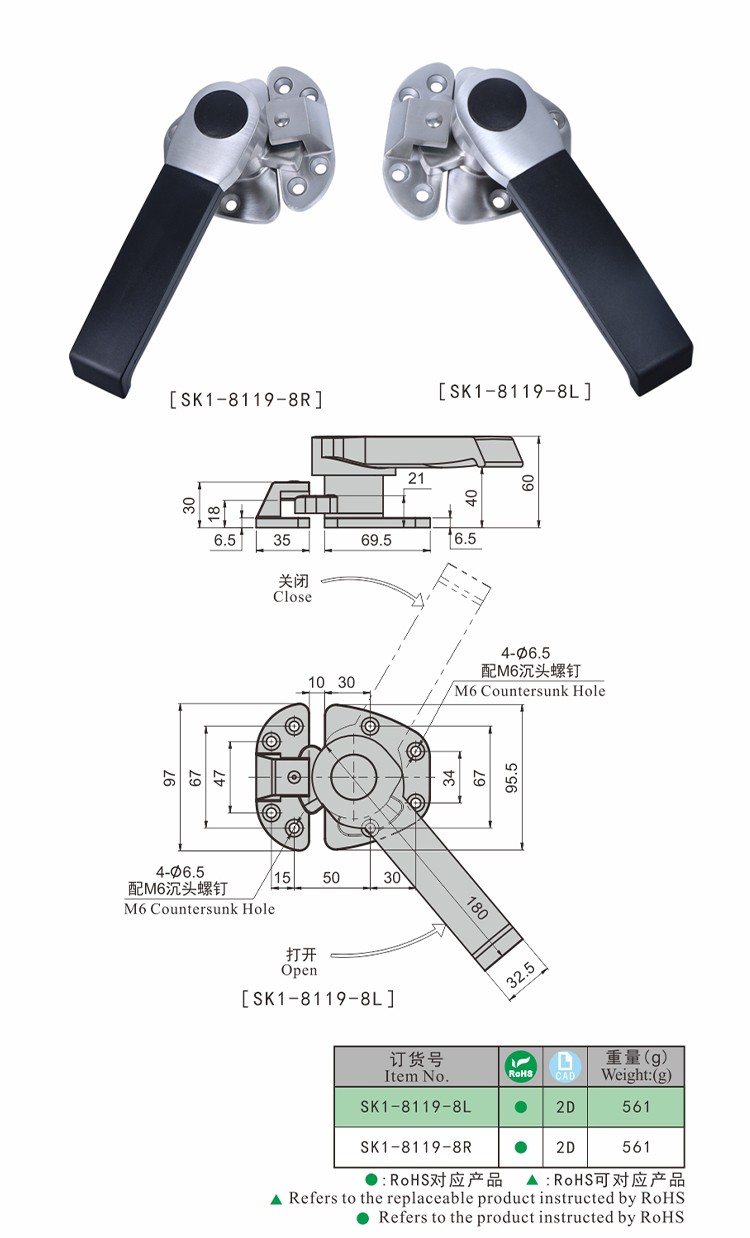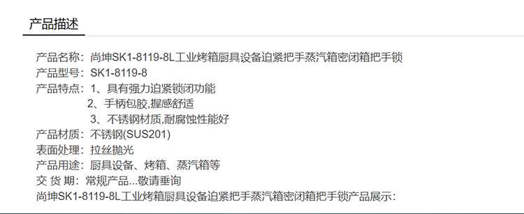 尚坤SK1-8119-8L工业烤箱厨具设备迫紧把手蒸汽箱密闭箱把手锁
