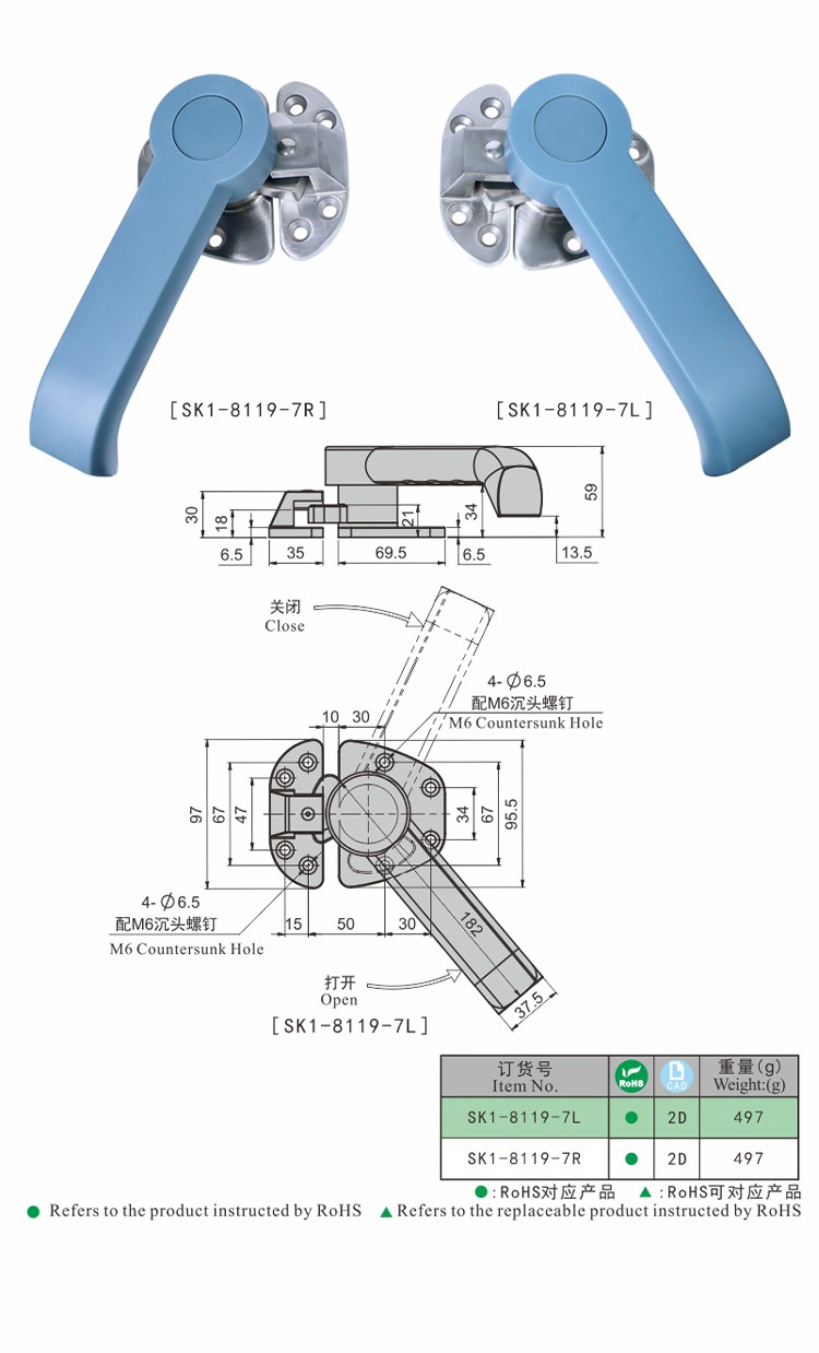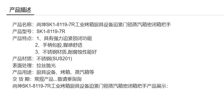 尚坤SK1-8119-7R工业烤箱厨具设备迫紧门锁蒸汽箱密闭箱把手