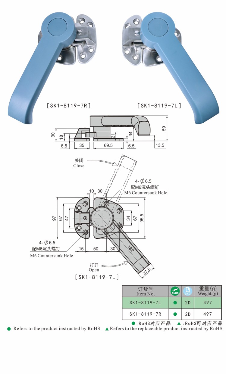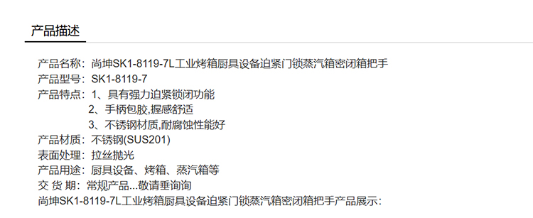 尚坤SK1-8119-7L工业烤箱厨具设备迫紧门锁蒸汽箱密闭箱把手