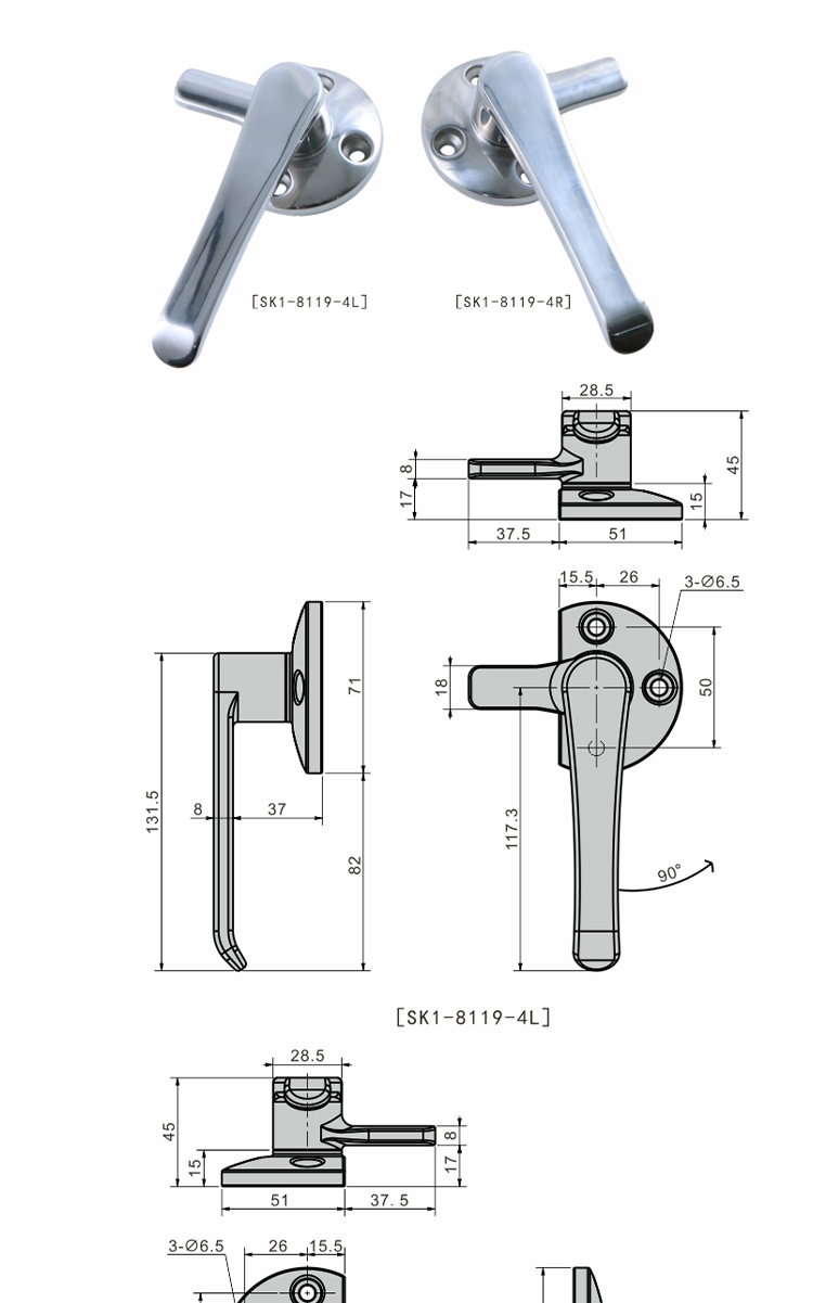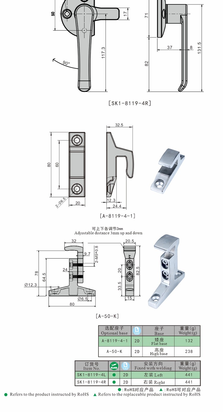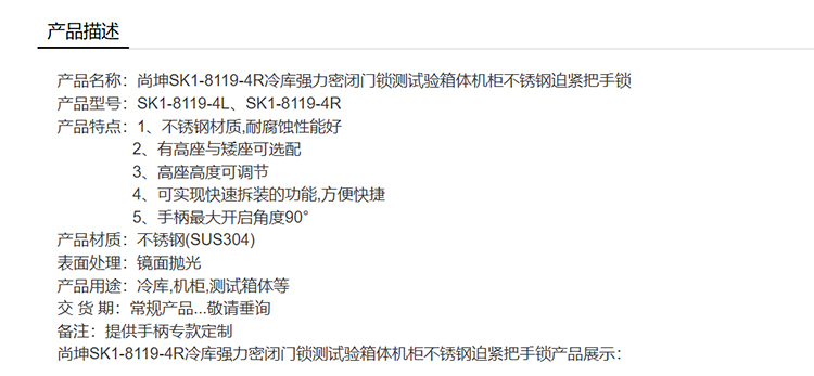 尚坤SK1-8119-4R冷库强力密闭门锁测试验箱体机柜不锈钢迫紧把手锁