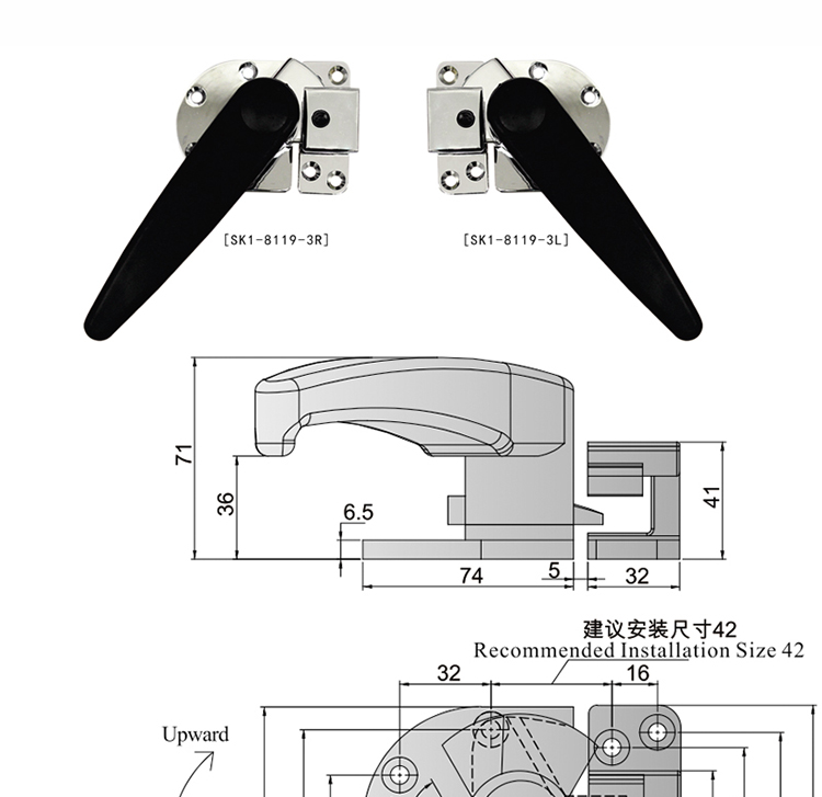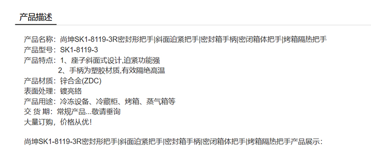 尚坤SK1-8119-3R密封形把手斜面迫紧把手密封箱手柄密闭箱体把手烤箱隔热把手