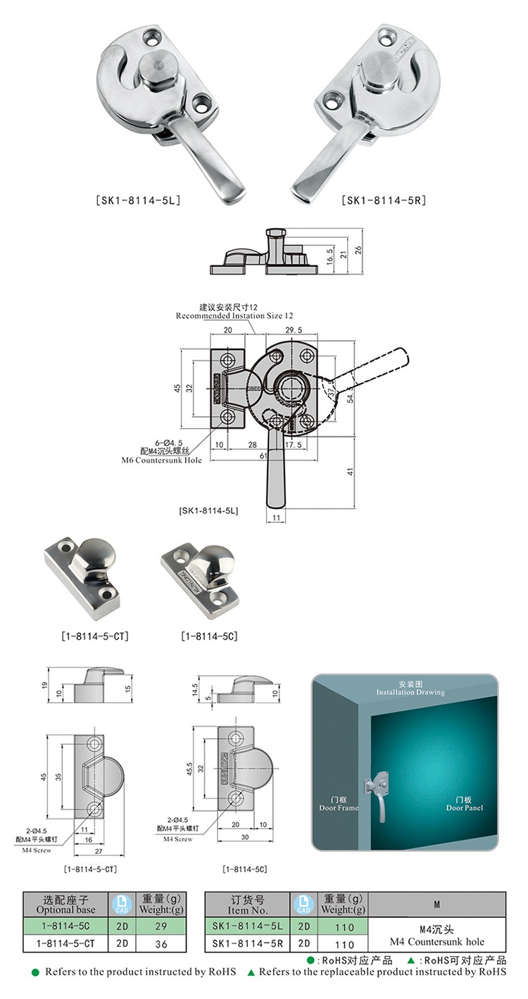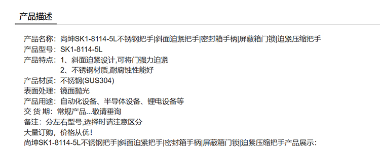 尚坤SK1-8114-5L不锈钢把手斜面迫紧把手密封箱手柄屏蔽箱门锁迫紧压缩把手