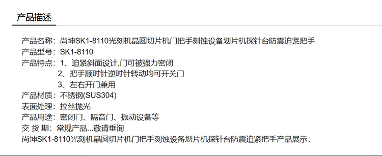 尚坤SK1-8110光刻机晶圆切片机门把手刻蚀设备划片机探针台防震迫紧把手