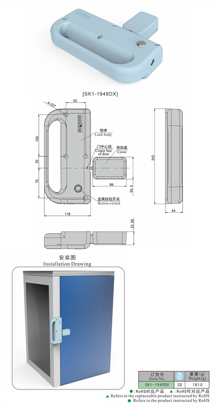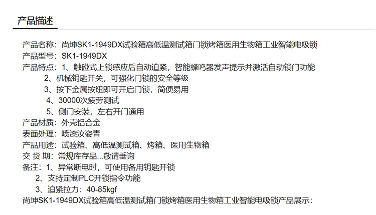 尚坤SK1-1949DX试验箱高低温测试箱门锁烤箱医用生物箱工业智能电吸锁