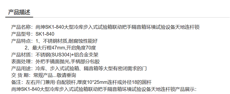 尚坤SK1-840大型冷库步入式试验箱联动把手隔音箱环境试验设备天地连杆锁