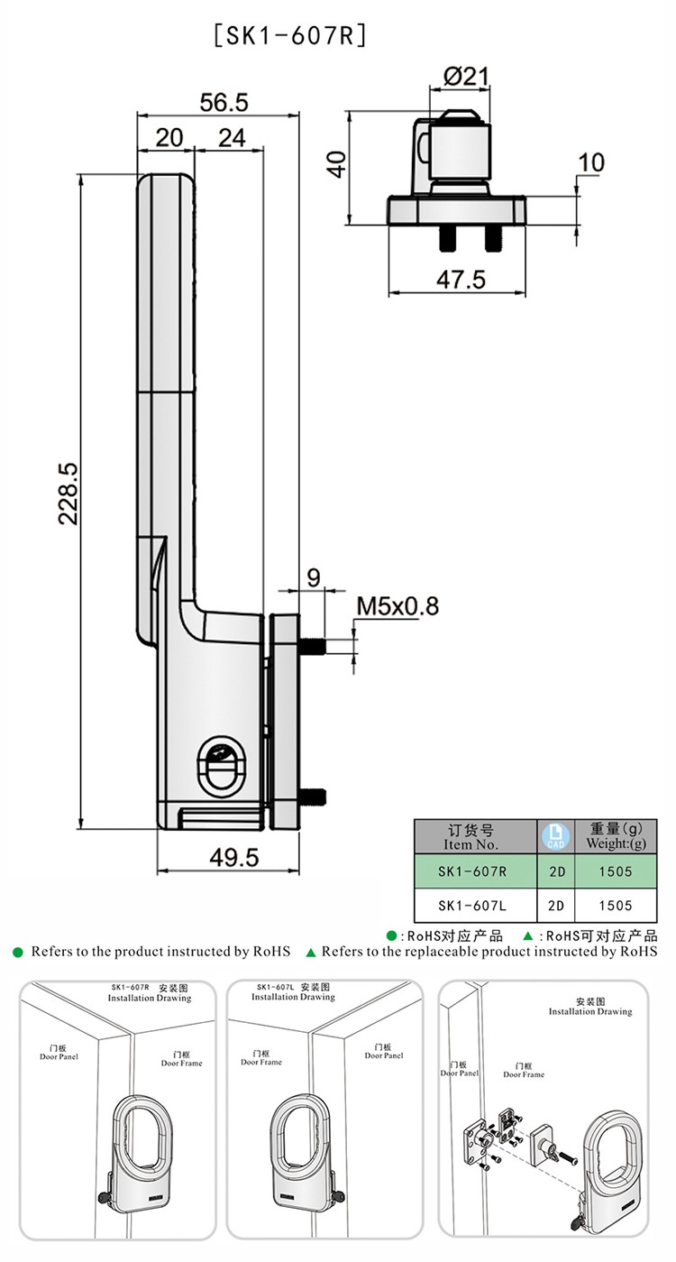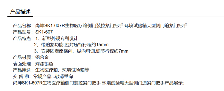 尚坤SK1-607R生物医疗箱侧门装拉紧门把手 环境试验箱大型侧门迫紧门把手