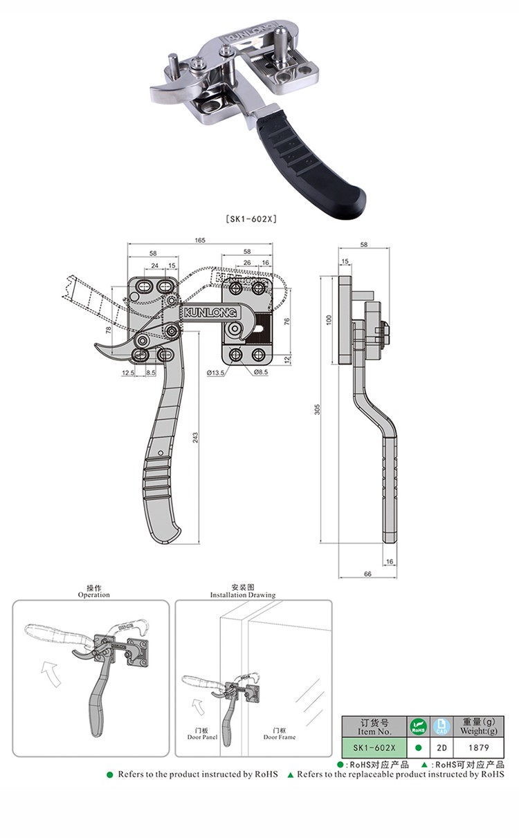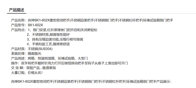 尚坤SK1-602X重型密闭把手不锈钢迫紧把手不锈钢侧门把手不锈钢杠杆把手环境试验箱侧门把手