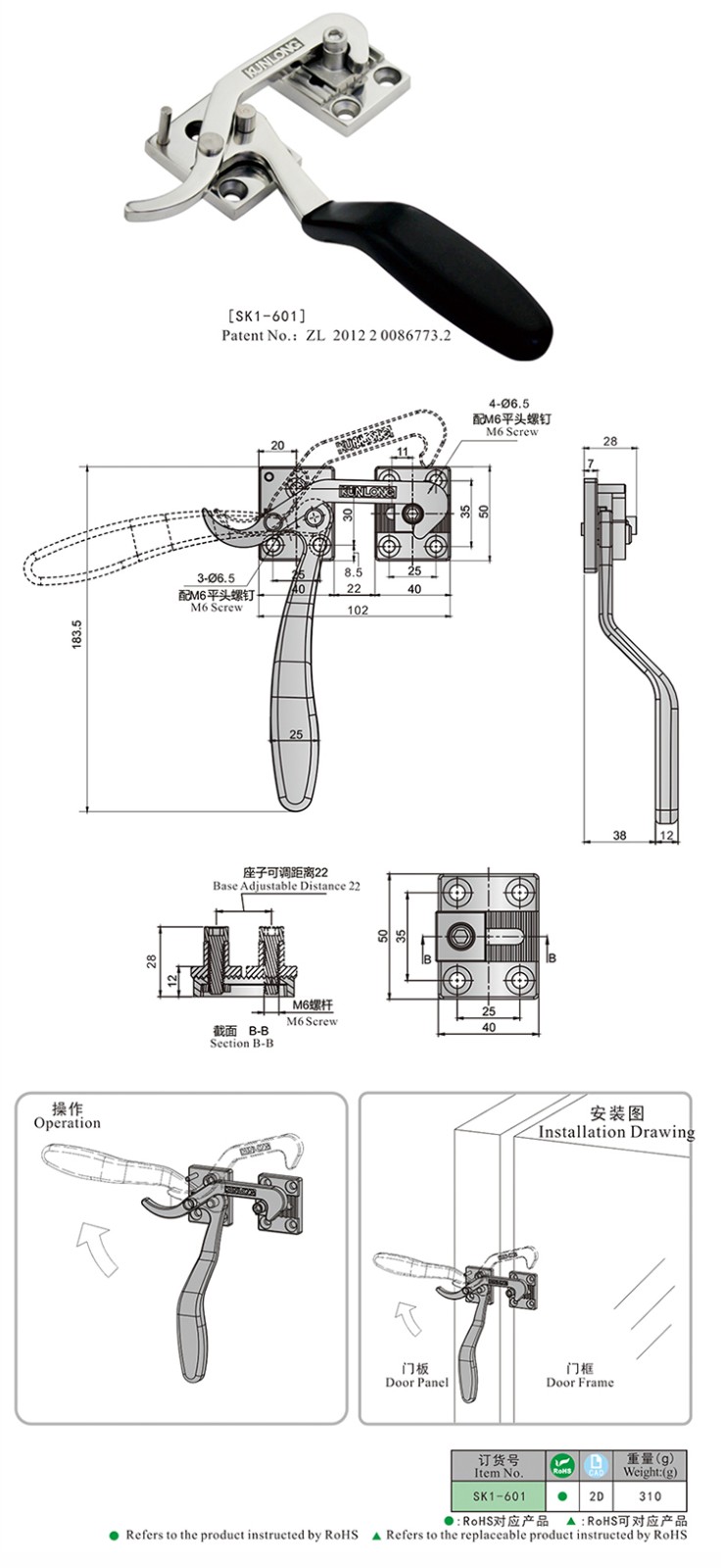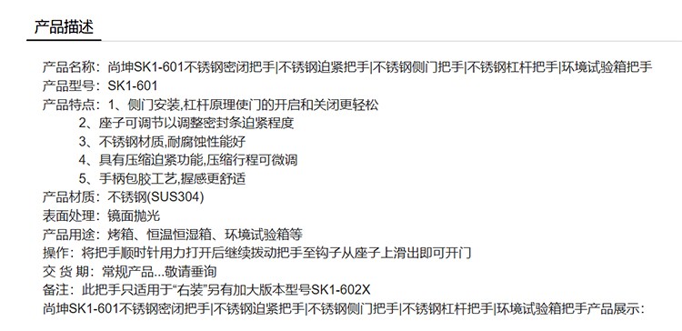 尚坤SK1-601不锈钢密闭把手不锈钢迫紧把手不锈钢侧门把手不锈钢杠杆把手环境试验箱把手