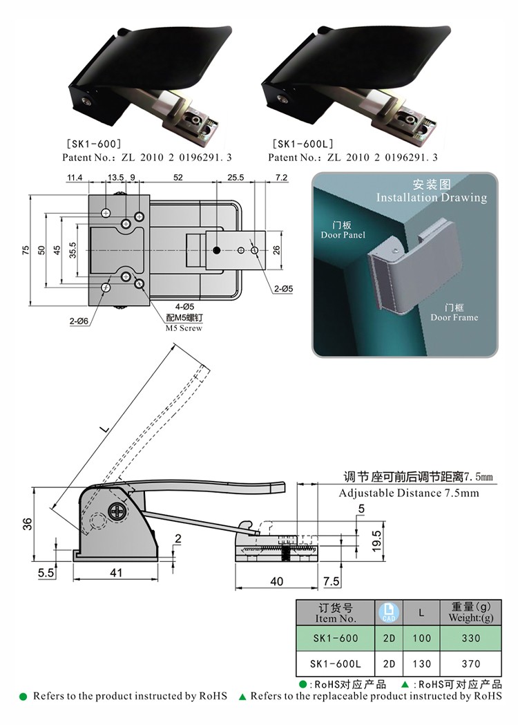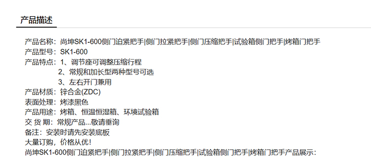 尚坤SK1-600侧门迫紧把手侧门拉紧把手侧门压缩把手试验箱侧门把手烤箱门把手