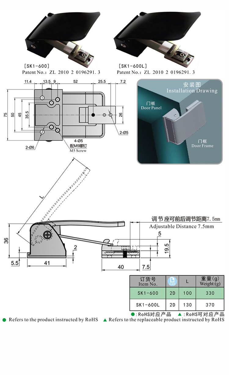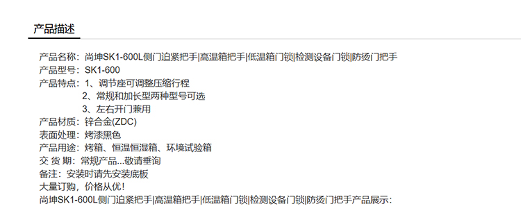 尚坤SK1-600L侧门迫紧把手高温箱把手低温箱门锁检测设备门锁防烫门把手