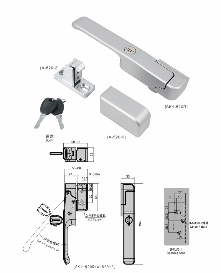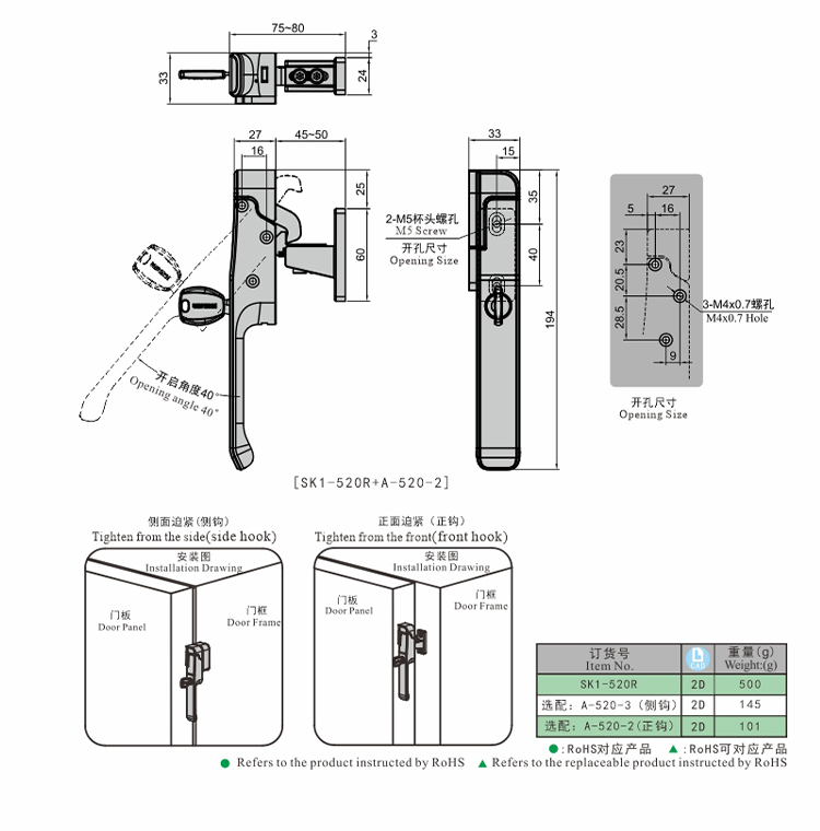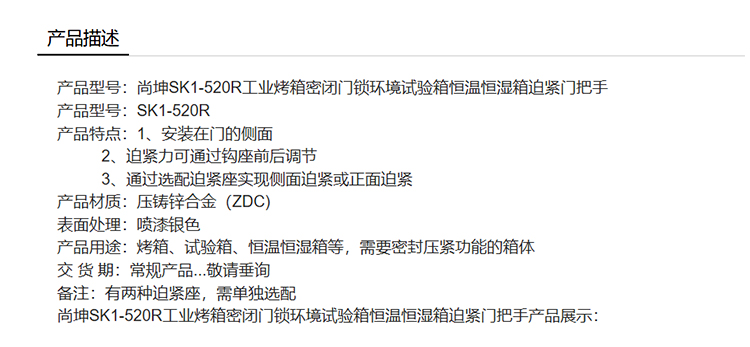 尚坤SK1-520R工业烤箱密闭门锁环境试验箱恒温恒湿箱迫紧门把手