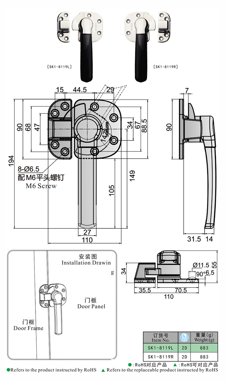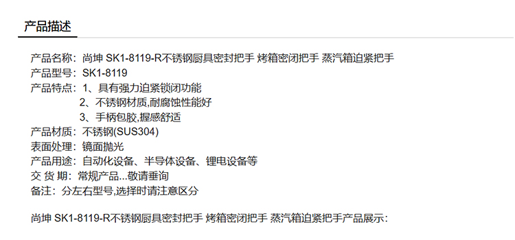 尚坤 SK1-8119-R不锈钢厨具密封把手 烤箱密闭把手 蒸汽箱迫紧把手