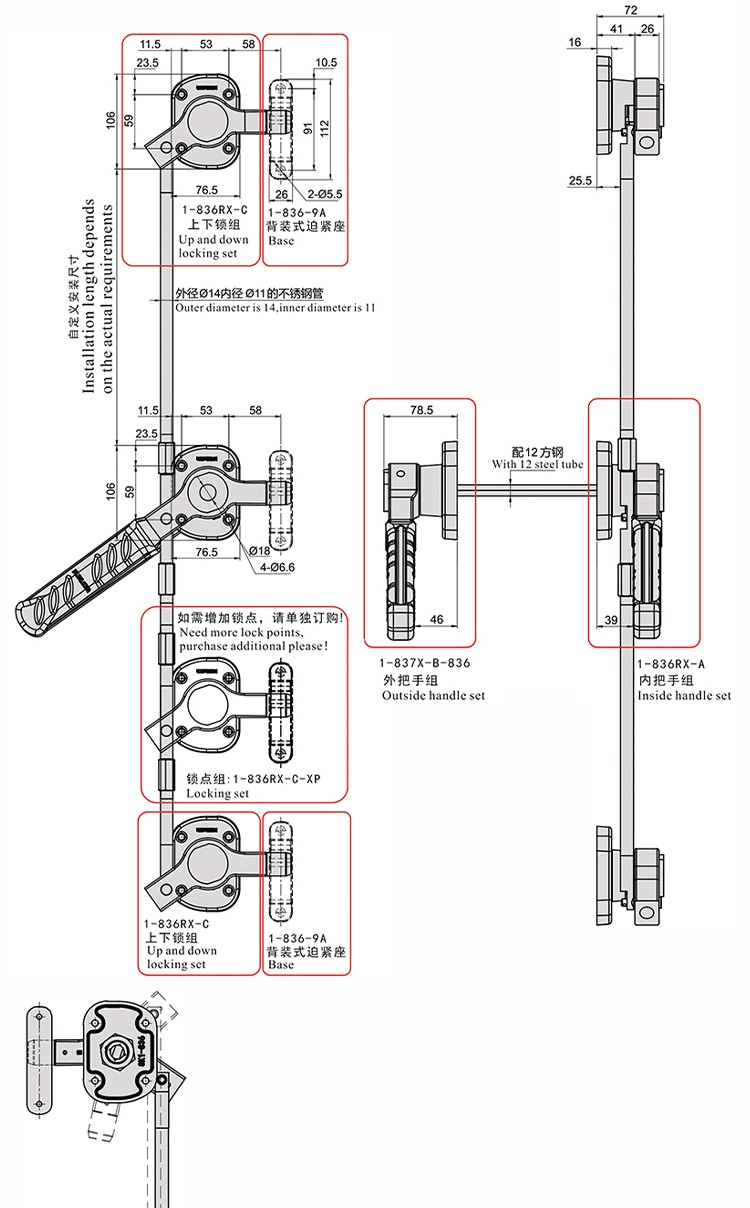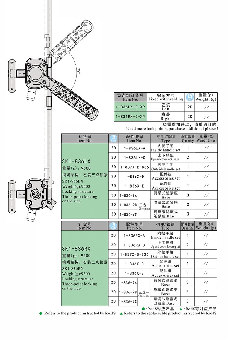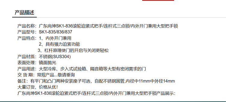 广东尚坤SK1-836滚轮迫紧式把手连杆式三点锁内外开门兼用大型把手锁