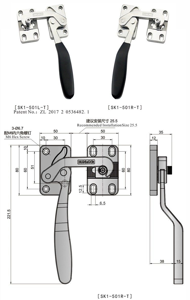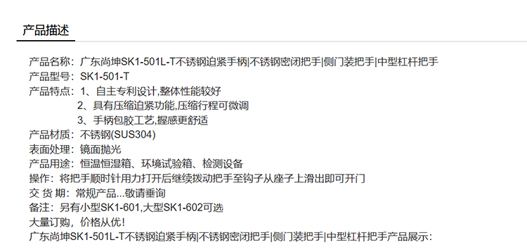 【升级版】尚坤SK1-501L-T 不锈钢迫紧手柄不锈钢密闭把手侧门装把手中型杠杆把手
