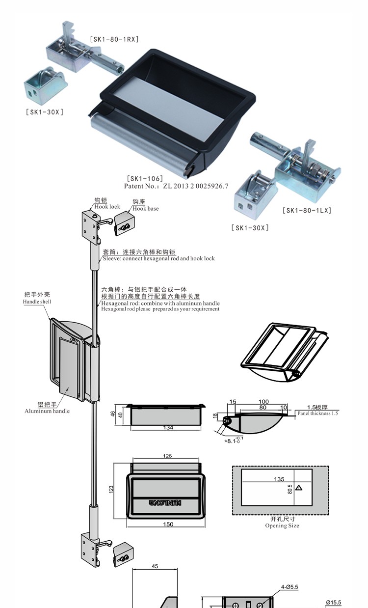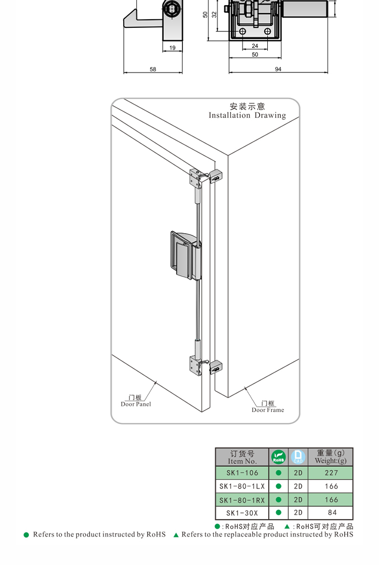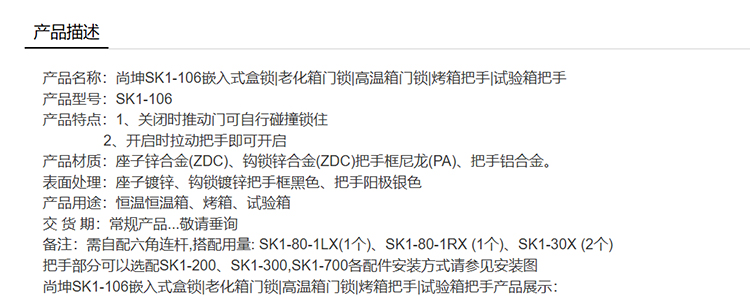 尚坤SK1-106嵌入式盒锁老化箱门锁高温箱门锁烤箱把手试验箱把手