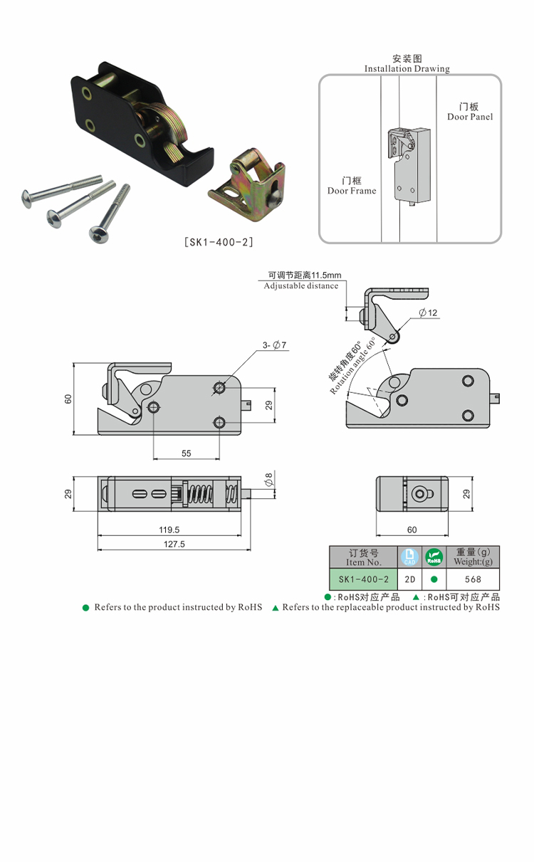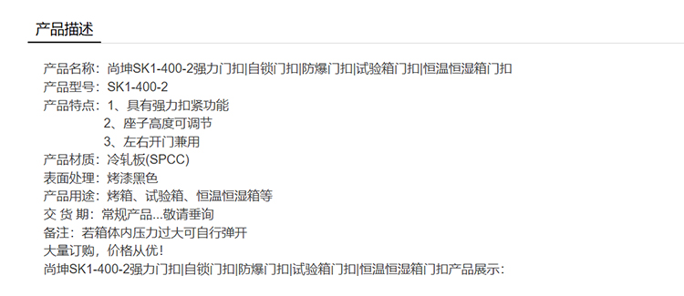 尚坤SK1-400-2强力门扣自锁门扣防爆门扣试验箱门扣恒温恒湿箱门扣