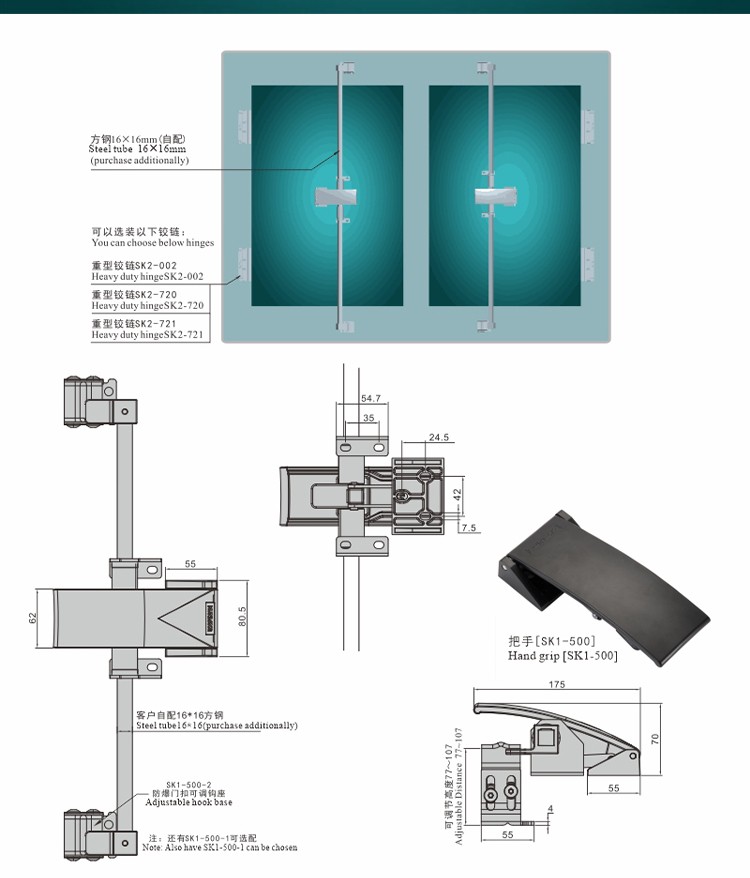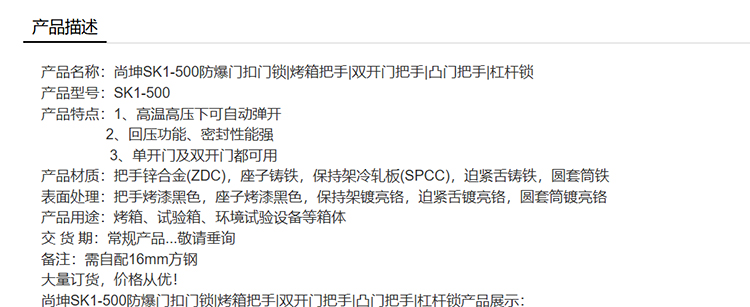 尚坤SK1-500防爆门扣门锁烤箱把手双开门把手凸门把手杠杆锁