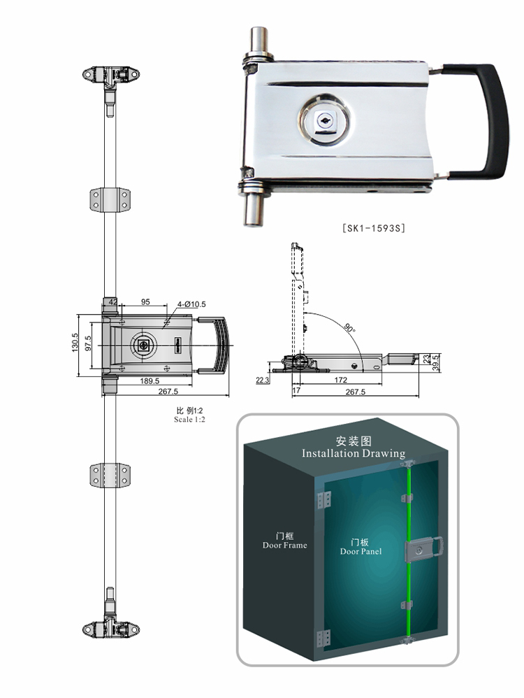 尚坤SK1-1593S大型货柜车厢锁连杆式把手锁天地式货柜锁不锈钢把手锁冷冻冷藏库门锁