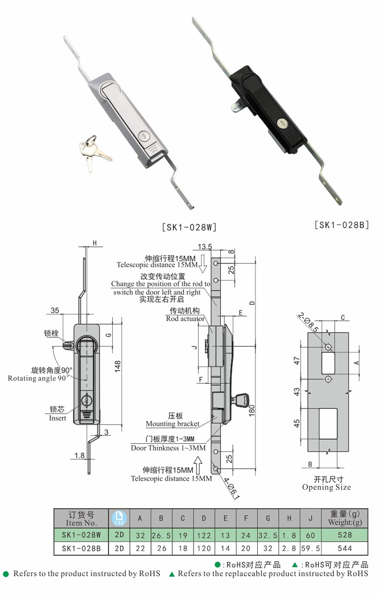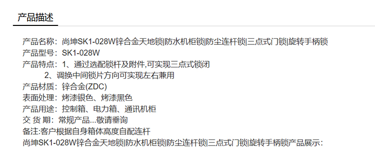 尚坤SK1-028W锌合金天地锁防水机柜锁防尘连杆锁三点式门锁旋转手柄锁
