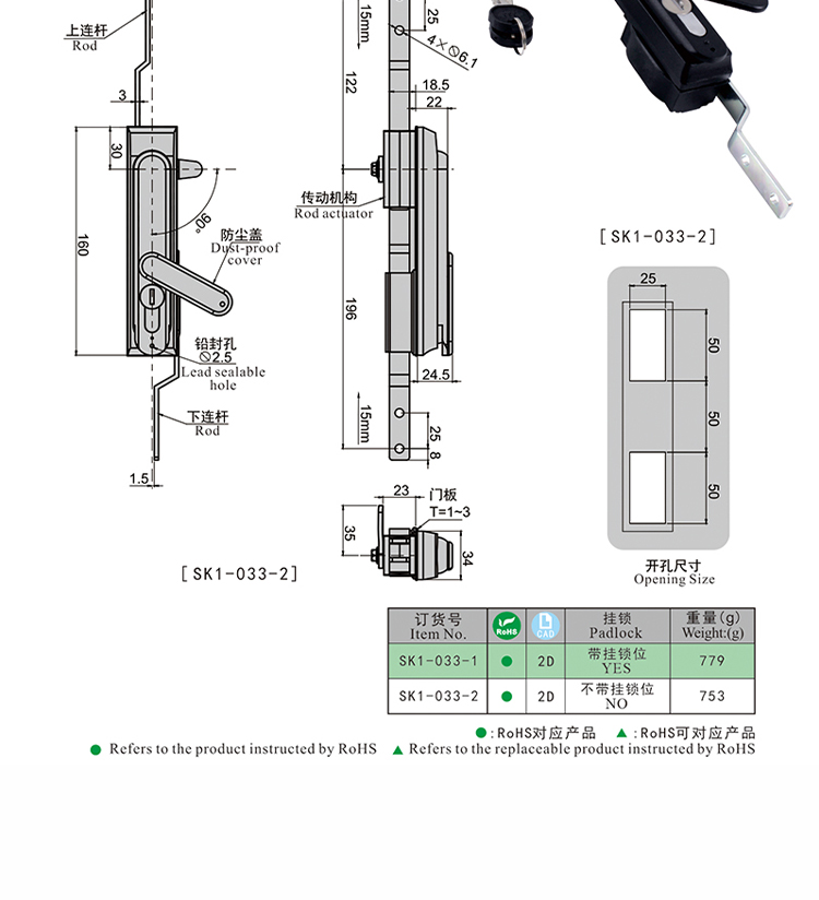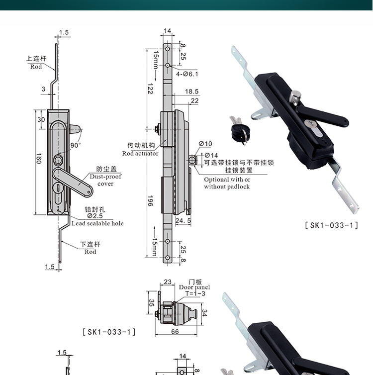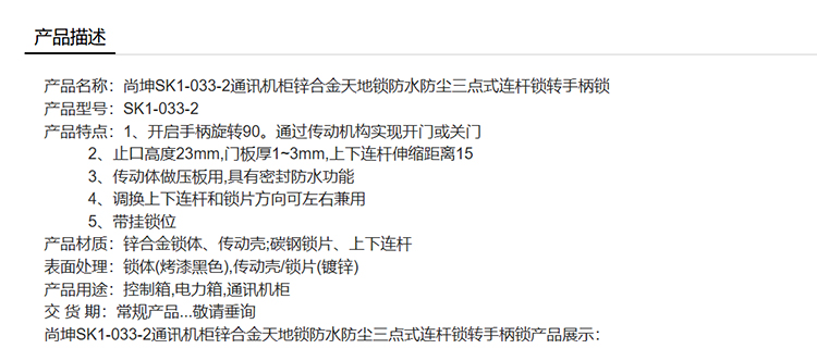 尚坤SK1-033-2通讯机柜锌合金天地锁防水防尘三点式连杆锁转手柄锁