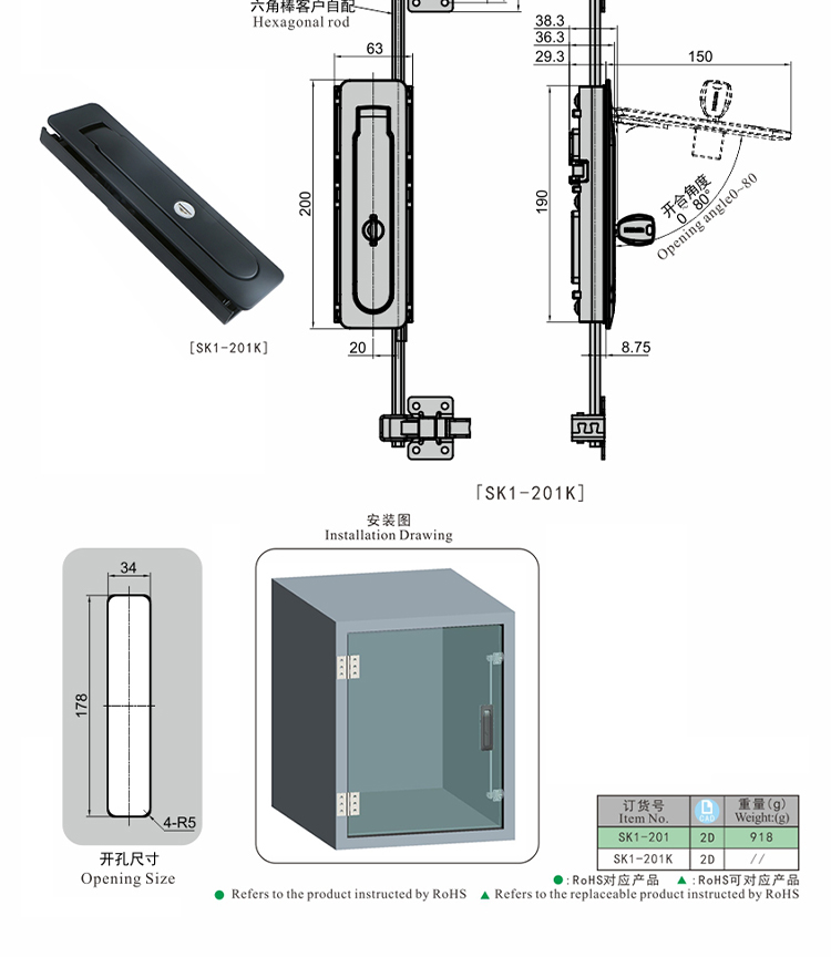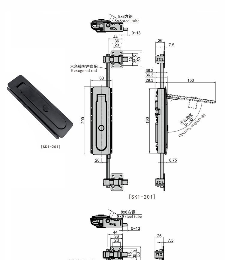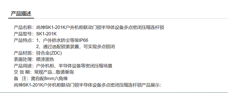 尚坤SK1-201K户外机柜联动门锁半导体设备多点密闭压缩连杆锁