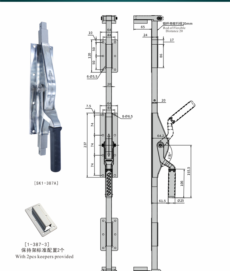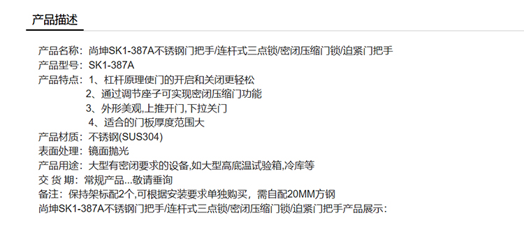 尚坤SK1-387A不锈钢门把手连杆式三点锁密闭压缩门锁迫紧门把手