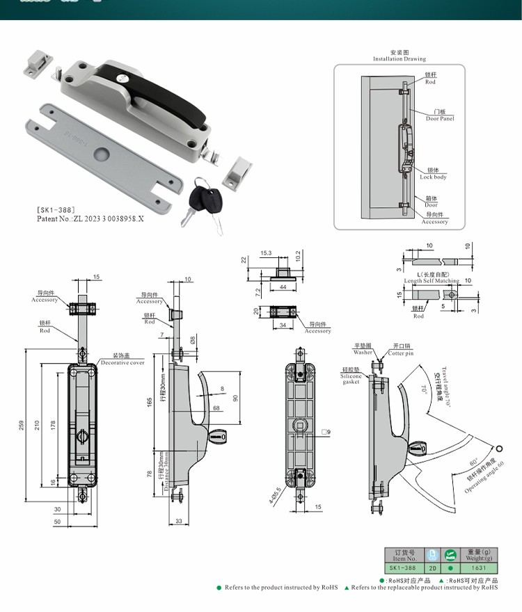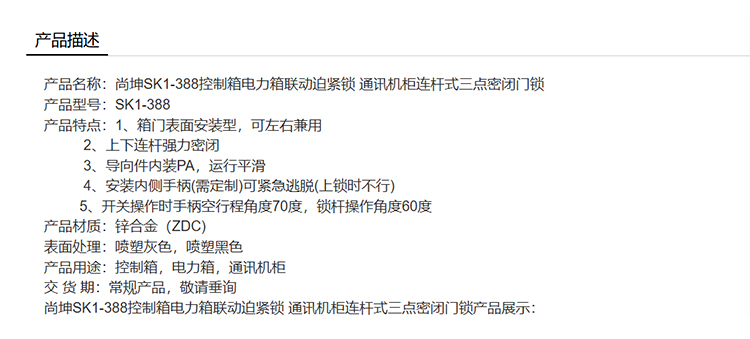 尚坤SK1-388控制箱电力箱联动迫紧锁 通讯机柜连杆式三点密闭门锁